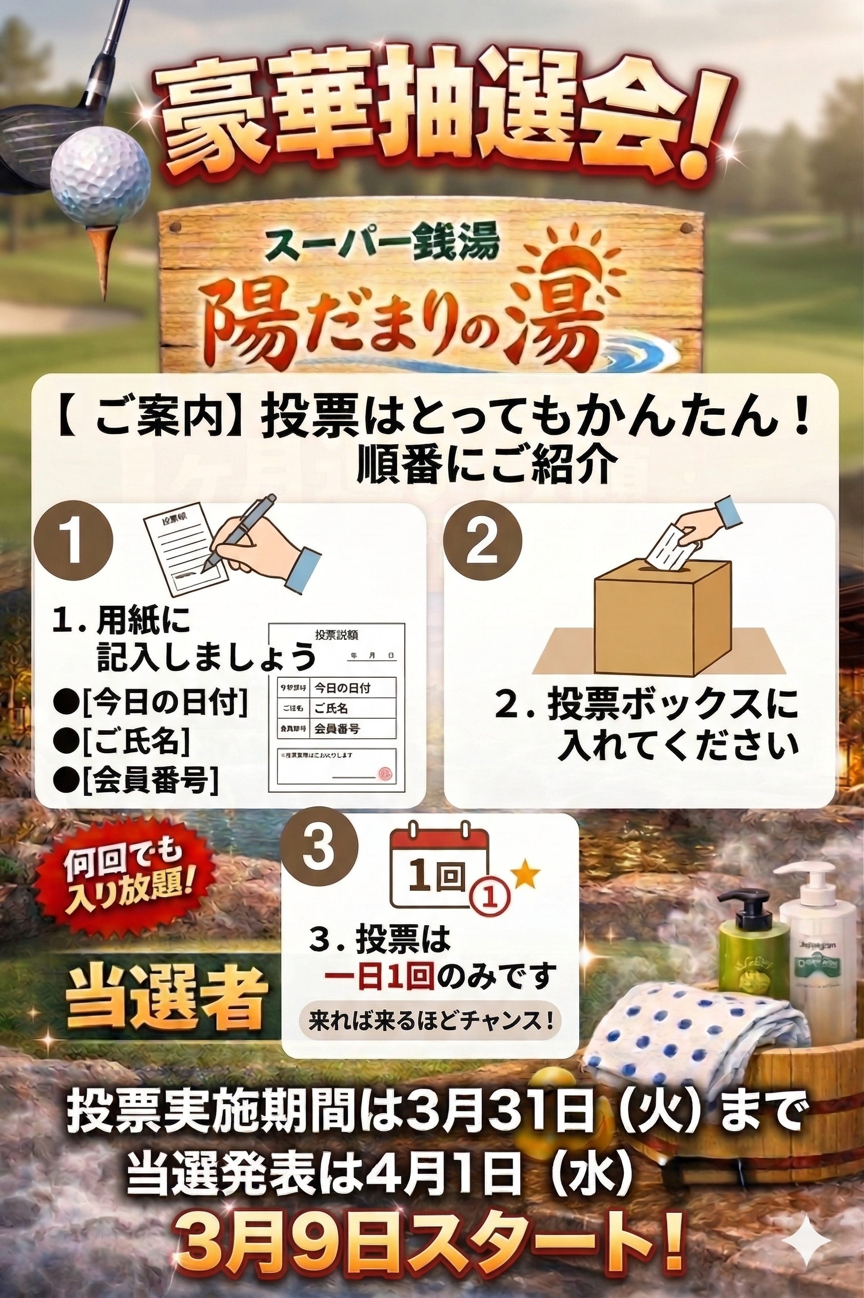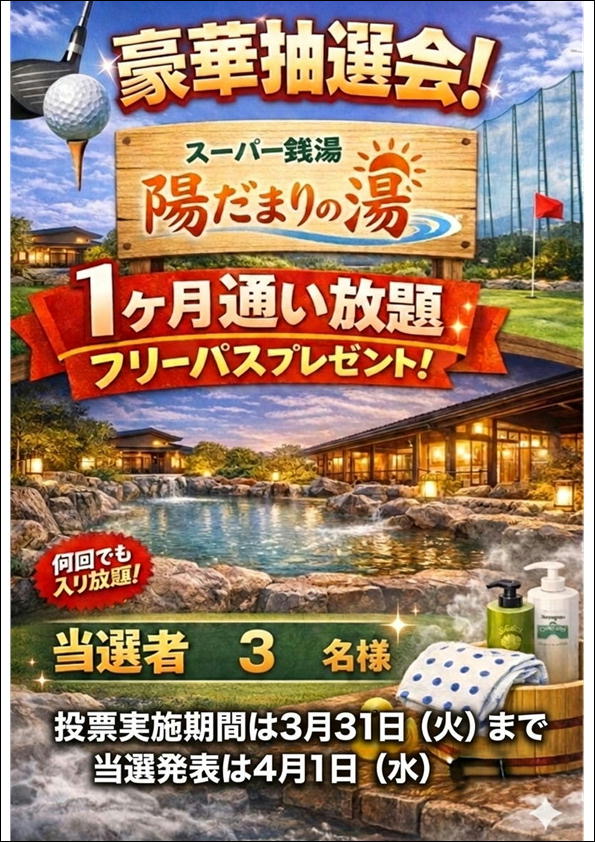2、陽だまりの湯1カ月フリーパス抽選会